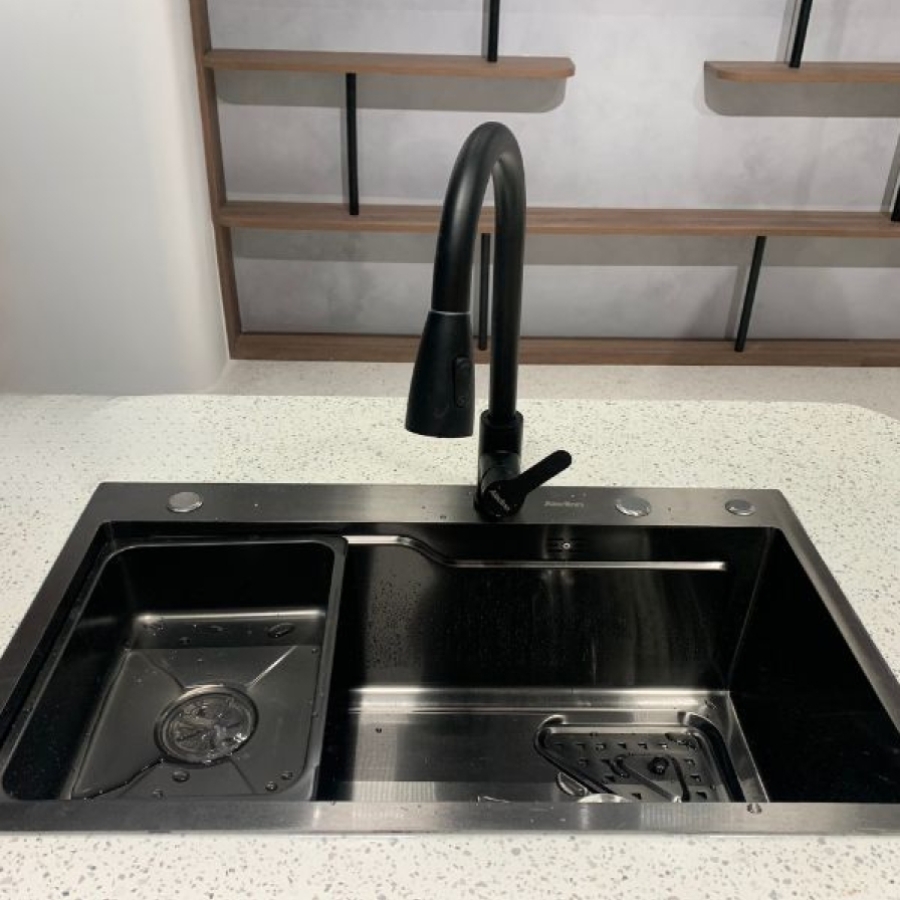Thiết kế màu đen nhám tối giản nhưng cực kỳ sang trọng, chậu A7545 là món phụ kiện không thể thiếu trang trí cho căn bếp hiện đại của bạn.