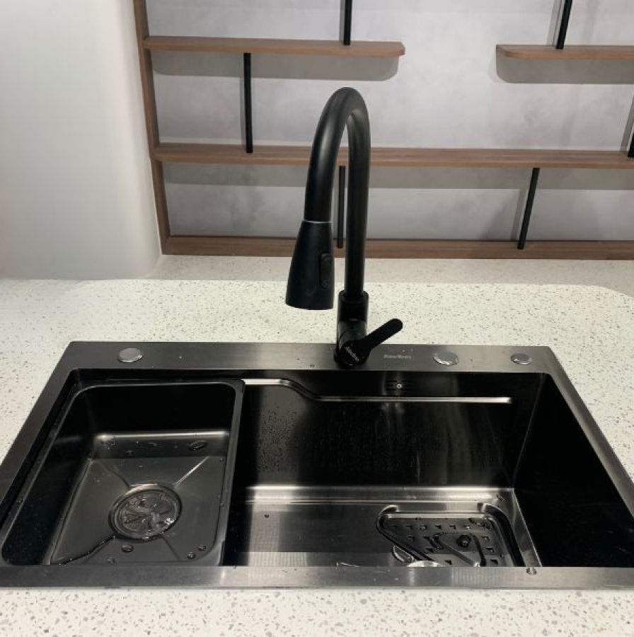 Hiện nay, chậu rửa chén là một vật dụng không thể thiếu trong cuộc sống hằng ngày của chúng ta. Phụ thuộc vào nhu cầu sử dụng của từng người, chậu rửa chén đã có rất nhiều hãng, mẫu mã xuất hiện trên thị trường. Việc lựa chọn được một sản phẩm tốt, phù hợp với nhu cầu sử dụng của mình trở nên khó khăn. Vì vậy, dưới đây Thiên Kim Home xin giới thiệu đến bạn một sản phẩm chất lượng tốt chính hãng đến từ Aladinn - Chậu rửa chén inox Aladinn A7545 NANO BLACK.