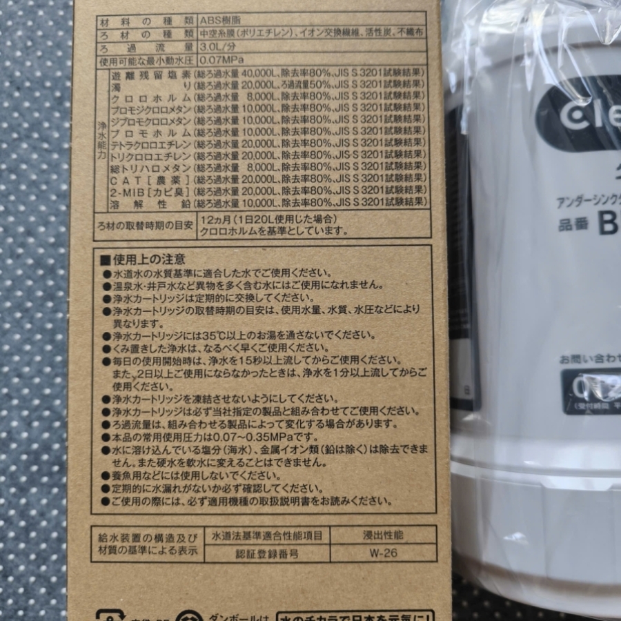 Lõi lọc Cleansui BUC12001 là lõi thay thế cho UZC2000/EUC2000 Lọc bỏ 12 chất độc hại. Tính năng: Loại bỏ các tạp chất và vi khuẩn có hại với hiệu suất cực cao lên đến 99,9% Vật Liệu: Vỏ Nhựa ABS, Than hoạt tính, vải không dệch, sợi trao đổi ion, màng lọc sợi rỗng… Khối Lượng: 0.8kg và khi chứa đầy nước là 1.4kg. Kích thươc: 105mm x 217mm. Lưu lượng lọc: 3 lít/ phút ( áp suất 0.07 – 0.35 mpa). Dung lượng: 8.000 lít, dự kiến thay thế lõi lọc trong 12 tháng ( nếu bình quân 1 ngày sử dụng 20L). Nguồn nước áp dụng: Nước máy thủy cục (BUC 12001 không dùng được với nước giếng khoan)