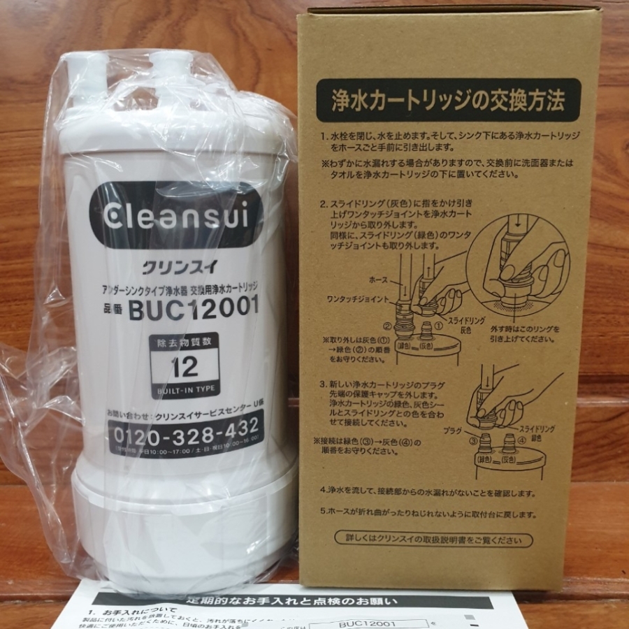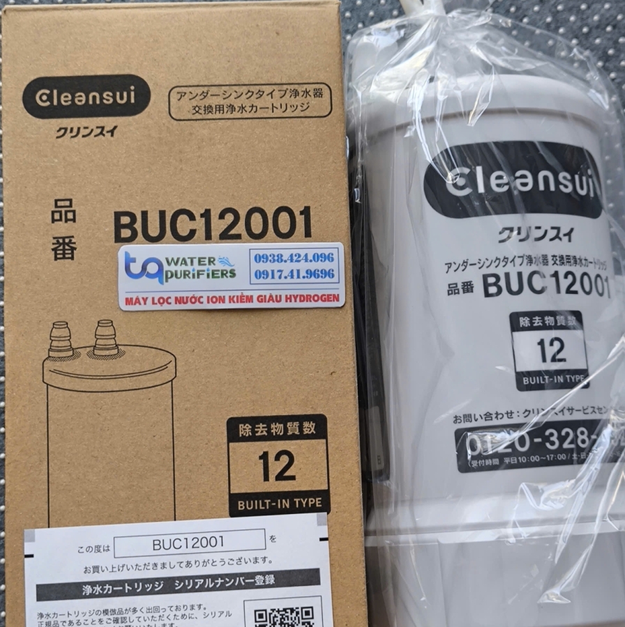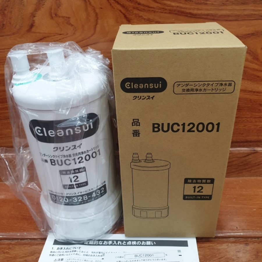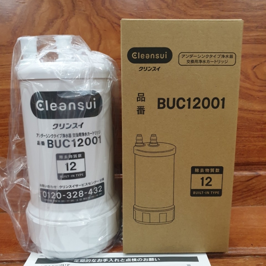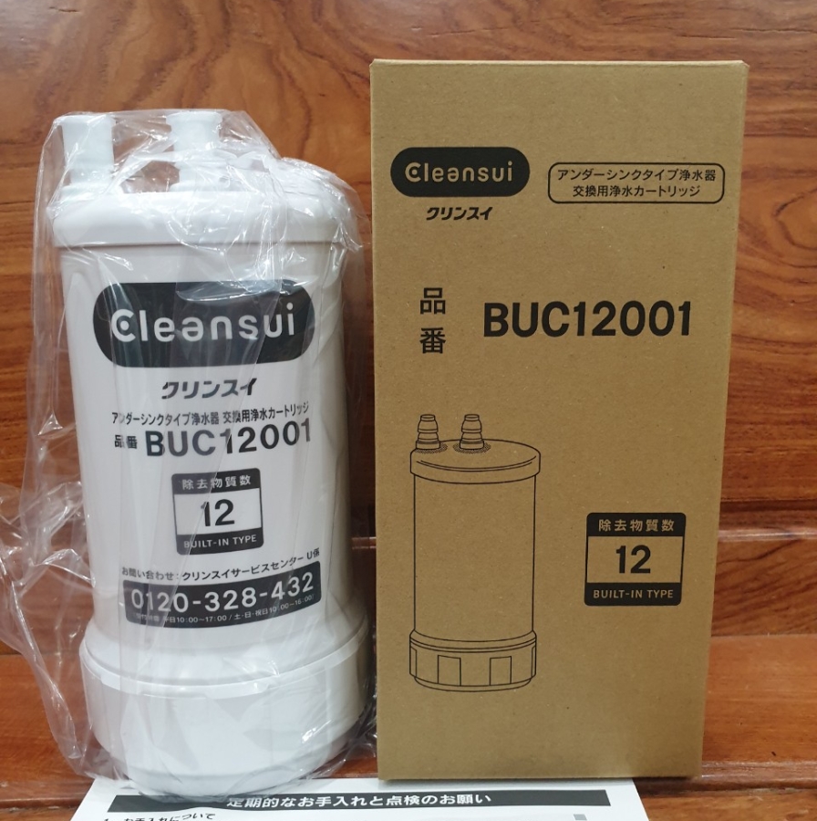 Lõi lọc Cleansui BUC12001 là lõi thay thế cho UZC2000/EUC2000 Lọc bỏ 12 chất độc hại. Tính năng: Loại bỏ các tạp chất và vi khuẩn có hại với hiệu suất cực cao lên đến 99,9% Vật Liệu: Vỏ Nhựa ABS, Than hoạt tính, vải không dệch, sợi trao đổi ion, màng lọc sợi rỗng… Khối Lượng: 0.8kg và khi chứa đầy nước là 1.4kg. Kích thươc: 105mm x 217mm. Lưu lượng lọc: 3 lít/ phút ( áp suất 0.07 – 0.35 mpa). Dung lượng: 8.000 lít, dự kiến thay thế lõi lọc trong 12 tháng ( nếu bình quân 1 ngày sử dụng 20L). Nguồn nước áp dụng: Nước máy thủy cục (BUC 12001 không dùng được với nước giếng khoan)
