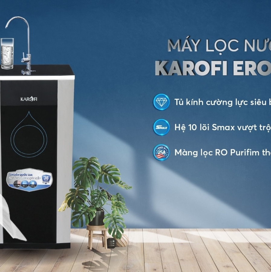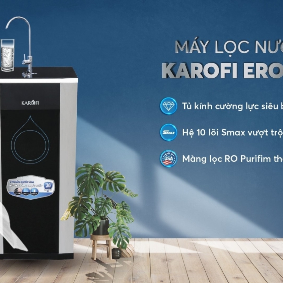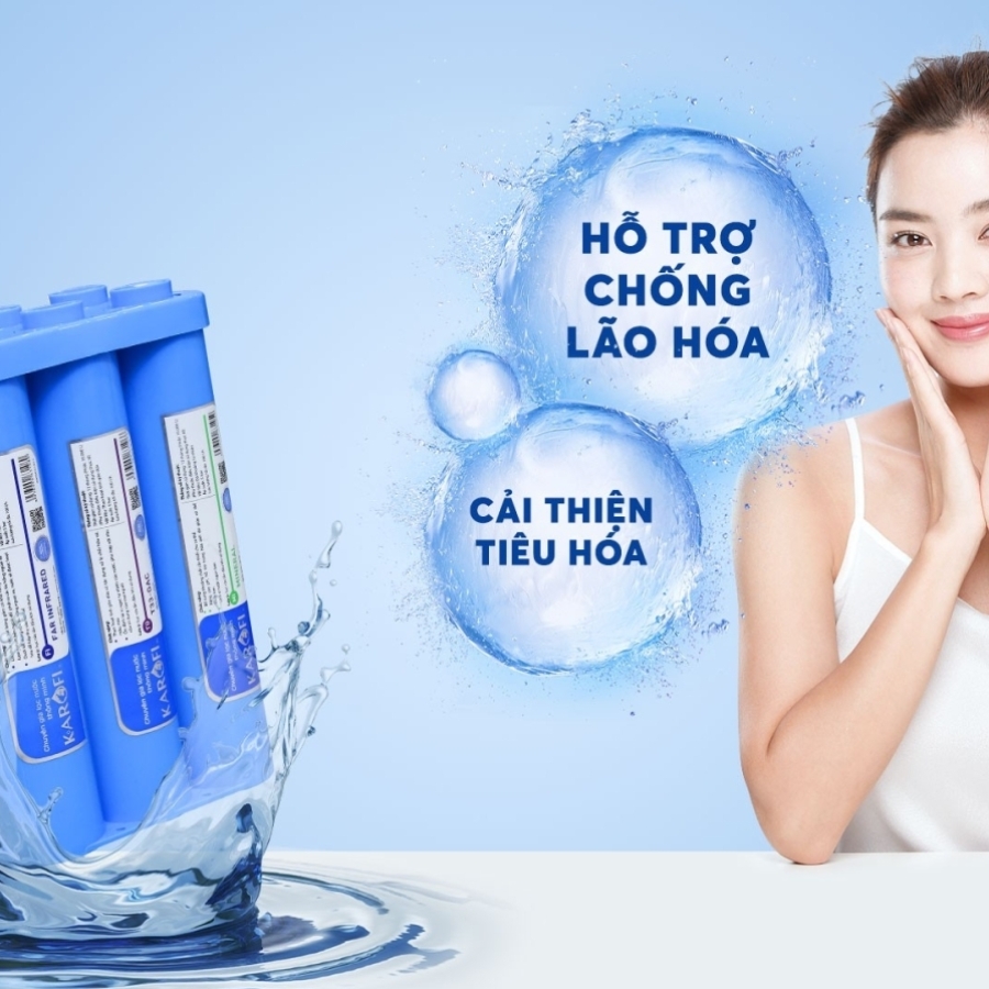 - Máy lọc nước Hydrogen Karofi ERO100 tạo Hydrogen hoạt tính bằng phương pháp tự nhiên hỗ trợ ngăn ngừa lão hoá.