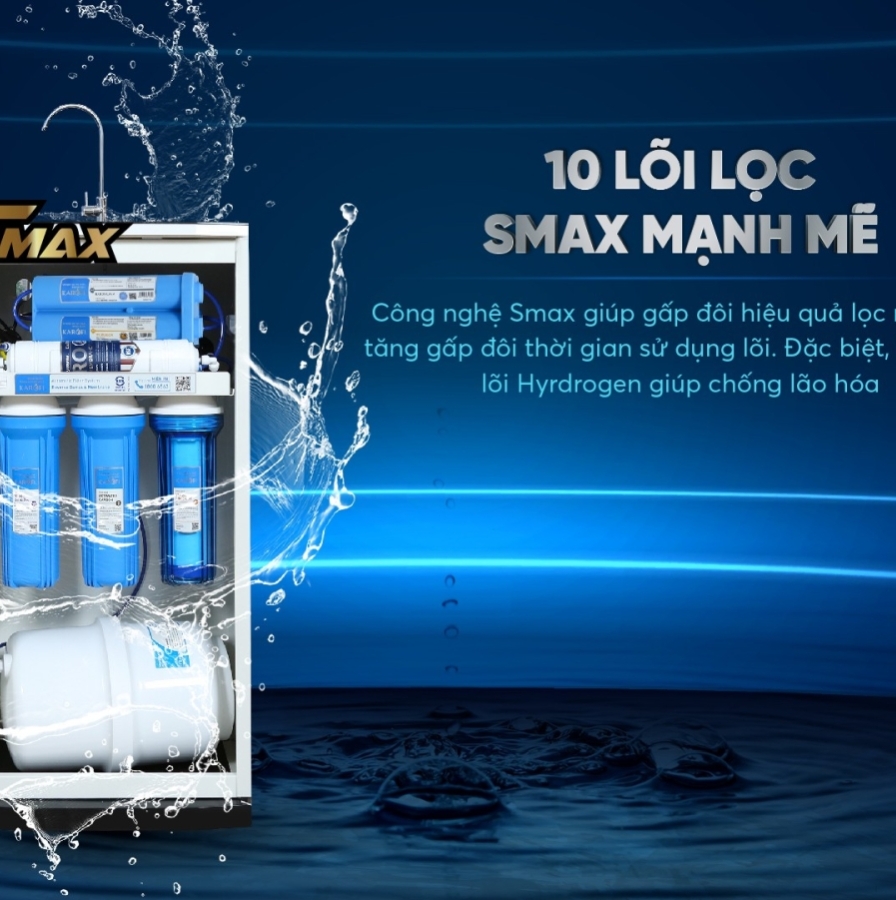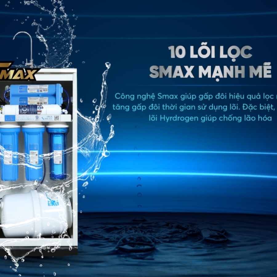 Hệ thống lọc 10 lõi sử dụng công nghệ SMAX gấp đôi lượng nước tinh khiết