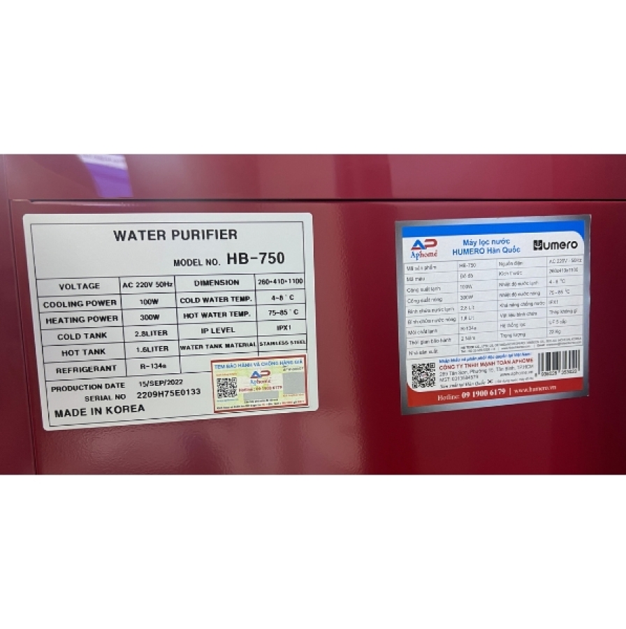Máy Lọc Nước Nóng Lạnh Humero HB750 Wine