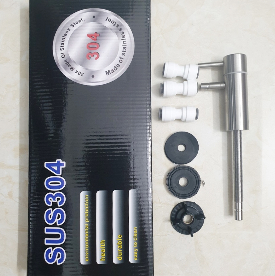 - Vòi inox 304 chuyên dùng cho máy lọc nước điện giải ion kiềm có vòi nước ra ở trên đầu.